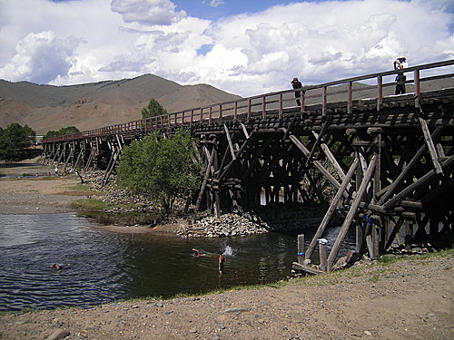 位於蒙古首都烏蘭巴托進入特勒吉國家公園必經之路,橫跨在土拉河之上,如此長而典雅的木造橋樑,伴隨著土拉河的甯靜,雖然沒有桂河大橋的壯觀和聲名大噪,仍不可抹去她造就北國草原城市的功勞和重要,承擔歷史的往來,站立橋旁,被深深的吸引。
